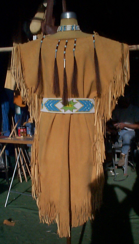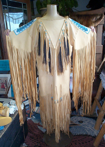 QUALITY HANDMADE BUCKSKIN AND ELK HIDE DRESSES, WARSHIRTS, VESTS, PANTS, MOCCASSINS, POSSIBLES BAGS, CHOKERS, AND MORE. PERFECT FOR POW WOWS, BLACK POWDER, RENDEZVOUS AND MOUNTIAN MEN. WITH OVER 6 YEARS EXPIERIENCE MY HUSBAND AND I WILL HELP YOU CREATE THE PERFECT OUTFIT OR ADDITIONS TO YOUR GEAR. |